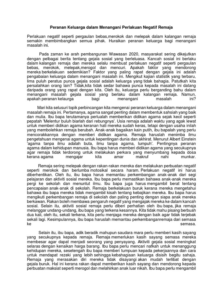 Langkah kerajaan mengekalkan keutuhan institusi keluarga. Karangan Bahasa Melayu BM SPM. Huraikan peranan ahli keluarga dalam membantu para remaja menghadapi cabaran-cabaran tersebut.